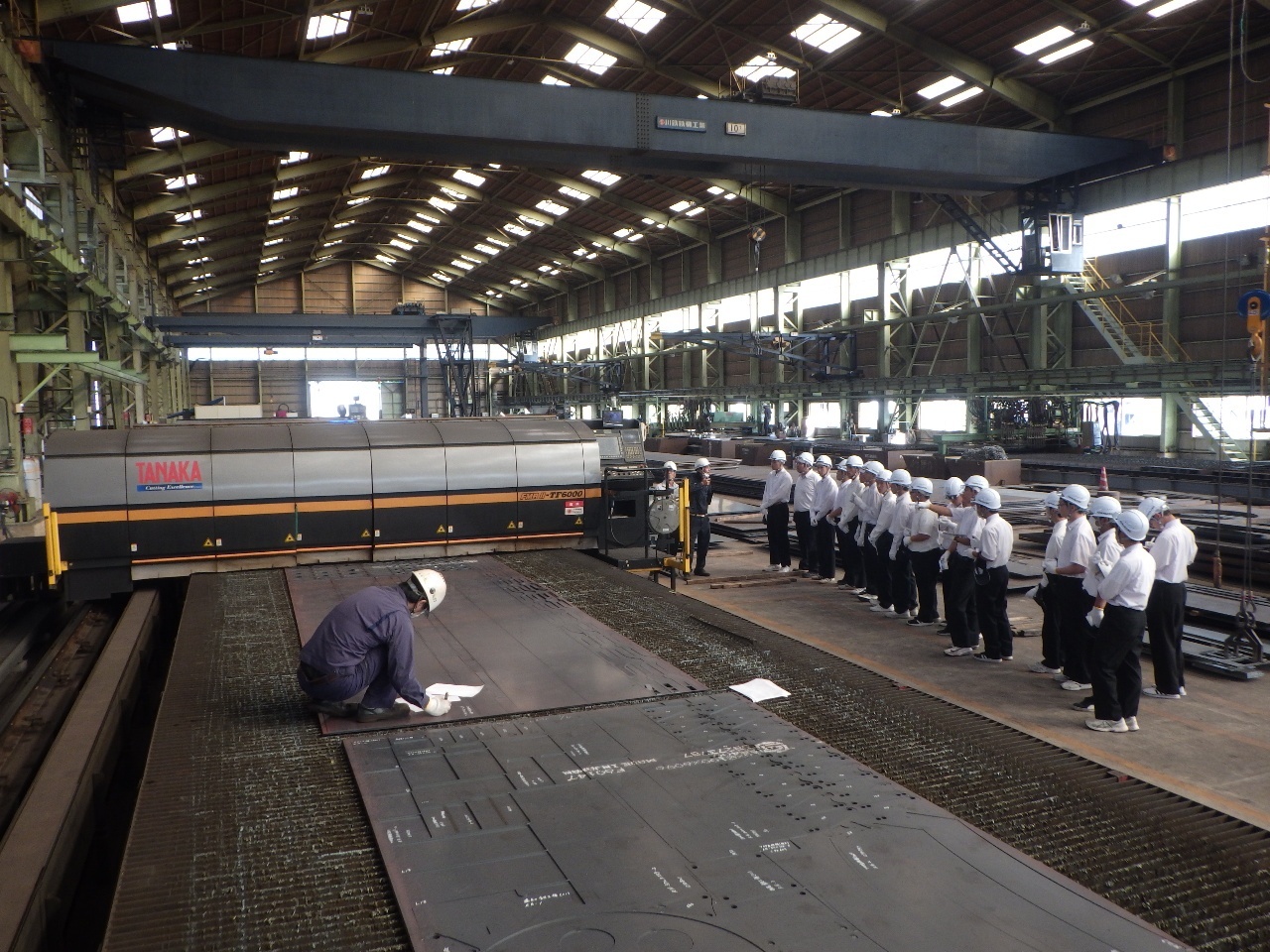 鉄骨のロボット溶接、橋梁の加工及び仮組立、鋼板の切断等の状況を見学していただきました。